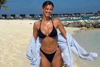 胡梅尔斯女友漫步沙滩 穿黑色比基尼笑容灿烂(图)